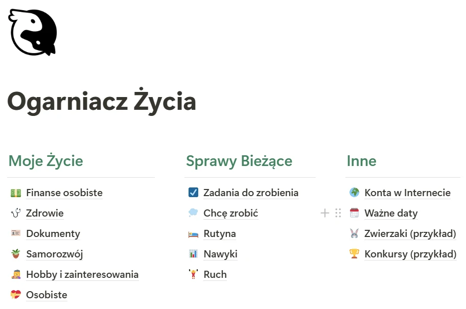 Ogarniacz Życia - przestrzeń do organizacji życia w aplikacji Notion