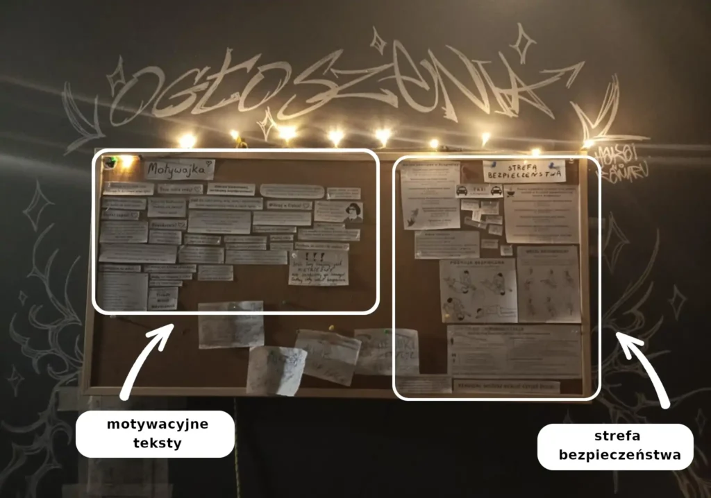 Pomysł powstał podczas aranżacji tablicy ogłoszeń w lokalu Over The Under Pub w Bydgoszczy przy ulicy Długiej 51. Poniżej zdjęcie: